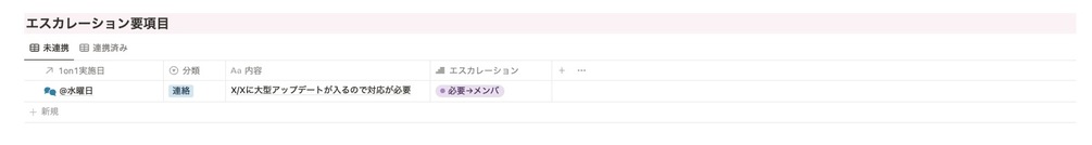 最後に1on1実施完了ボタンを押して完了です。 - エスカレーションが必要な項目は トップの下部にエスカレーション要項目が一覧で表示されます。
