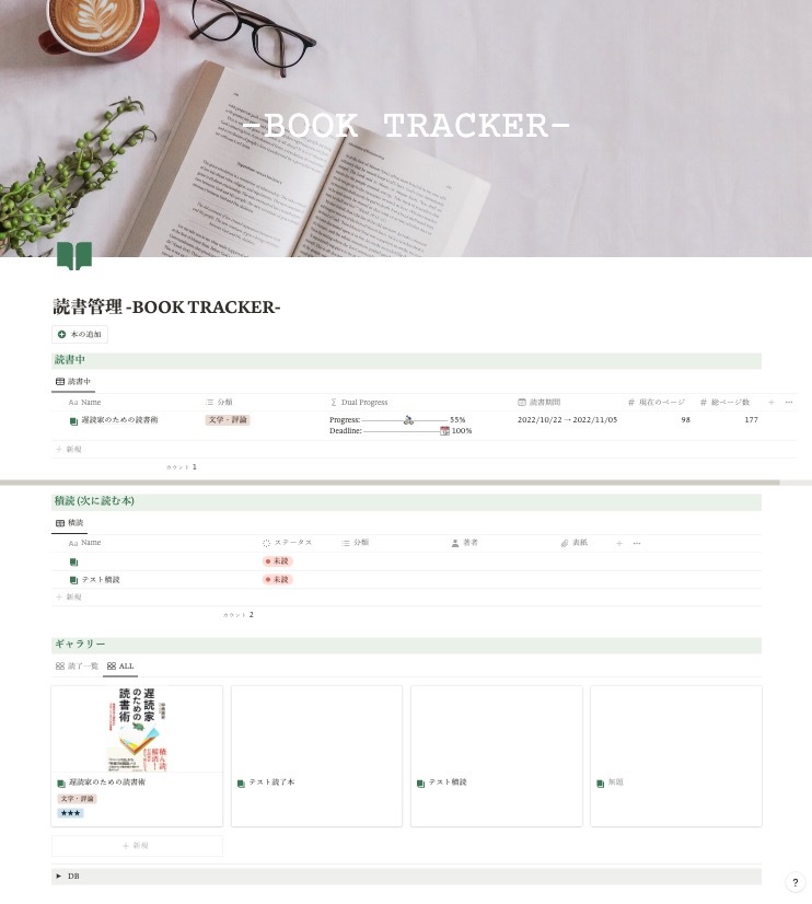 読書管理 -BOOK TRACKER-のNotionテンプレートです。