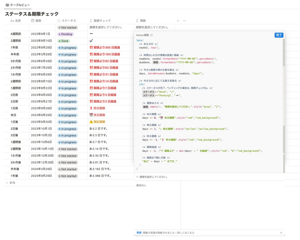 Notionデータベースチートシート_ステータス&期限による期限チェック編