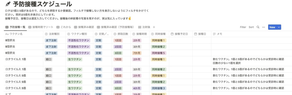 未だに手書きの問診票の小児科だったり、前回の予防接種はいつ?種類は?生ワクチン?不活性ワクチン?など覚えていないけど記入しないといけない。。な感じだったので、データベース化してビューですぐに確認できるようにしました。