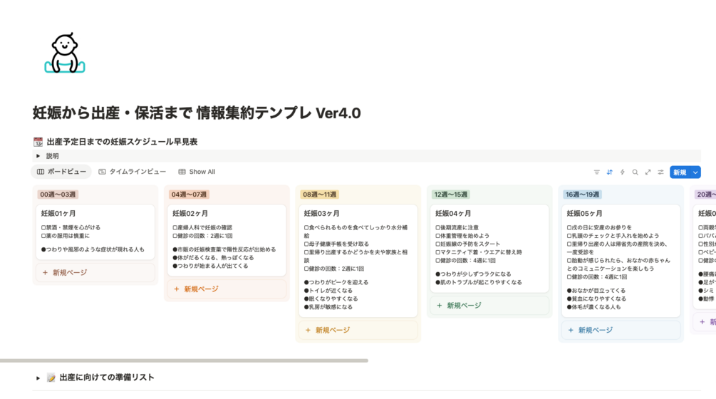 【Notion】妊娠から出産・保活まで 情報集約テンプレ Ver4.0