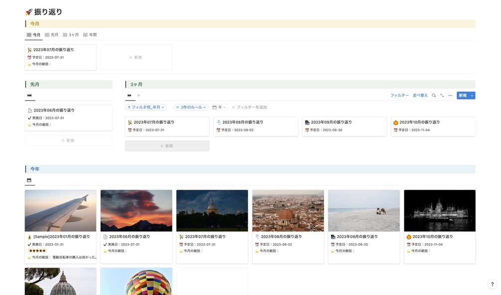 一年ビューは今月の写真でのギャラリービューなので、写真で一年を振り返ることもできます。